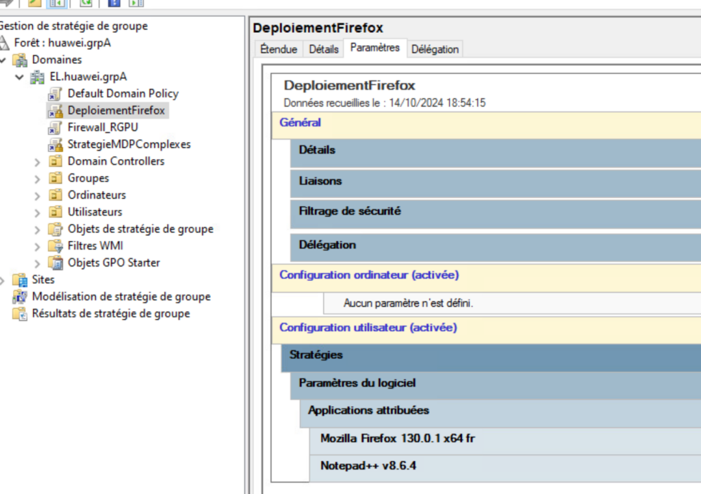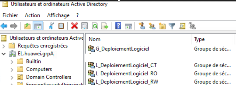 | L’entreprise HUAWEI à donc souhaité automatiser l’installation de logiciels Firefox et Notepad ++ pour ses développeurs. Elle à donc utilisé les GPO pour automatiser le processus : Pour ce faire, nous avons donc crée, grâce à l’AGDLP, des droits d’accès sur un dossier ou sont présents les logiciels que l’on souhaite installer : | ![]() ![]() |