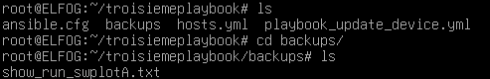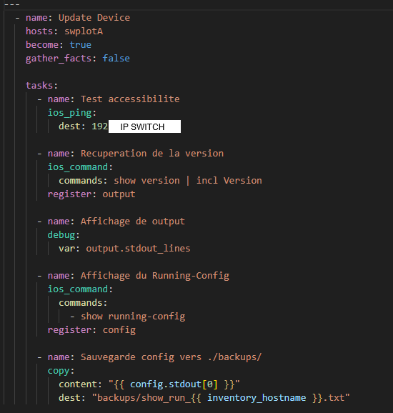 | Un troisième playbook a été utilisé afin de pouvoir sauvegarder la configuration du switch de l’entreprise : | ![]() |