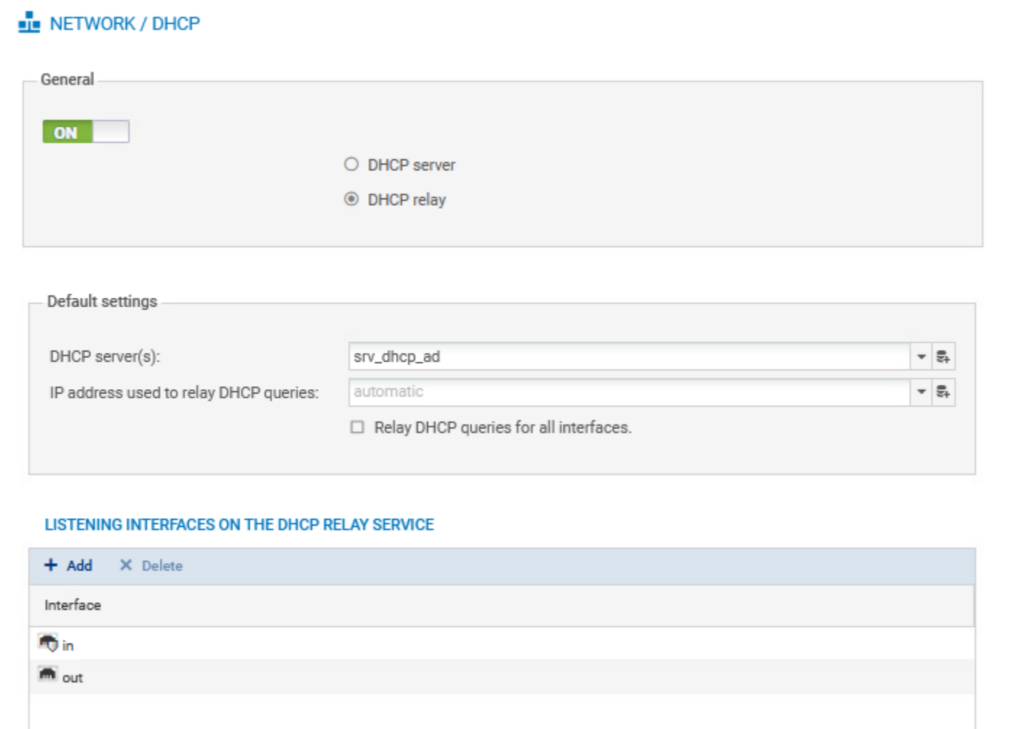 L’agent relais permet de transmettre les messages et réponses entre le serveur DHCP, présent dans le réseau SRVInterne et les machines de mon LAN.