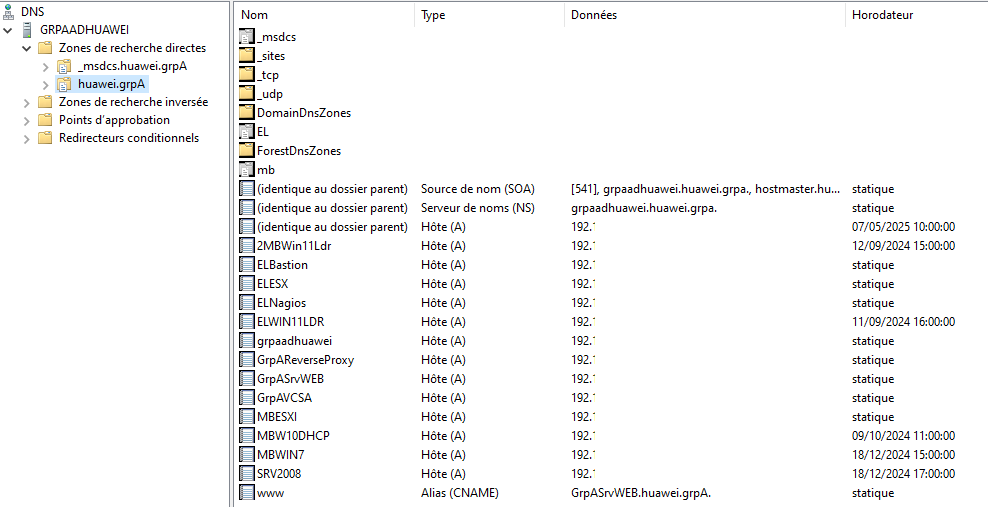 Le service DNS permet de traduire les noms de domaine (ex : www.el.huawei.grpA) en une adresse IP qui permet aux ordinateurs de pouvoir se connecter entre eux.