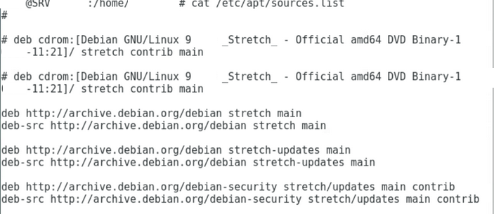 | – Changement des sources APT du Debian pour avoir la source archives car Debian 9 est EOL (End-of-Life). – Mise à jour de la liste des paquets (en faisant un sudo apt update). | ![]() |