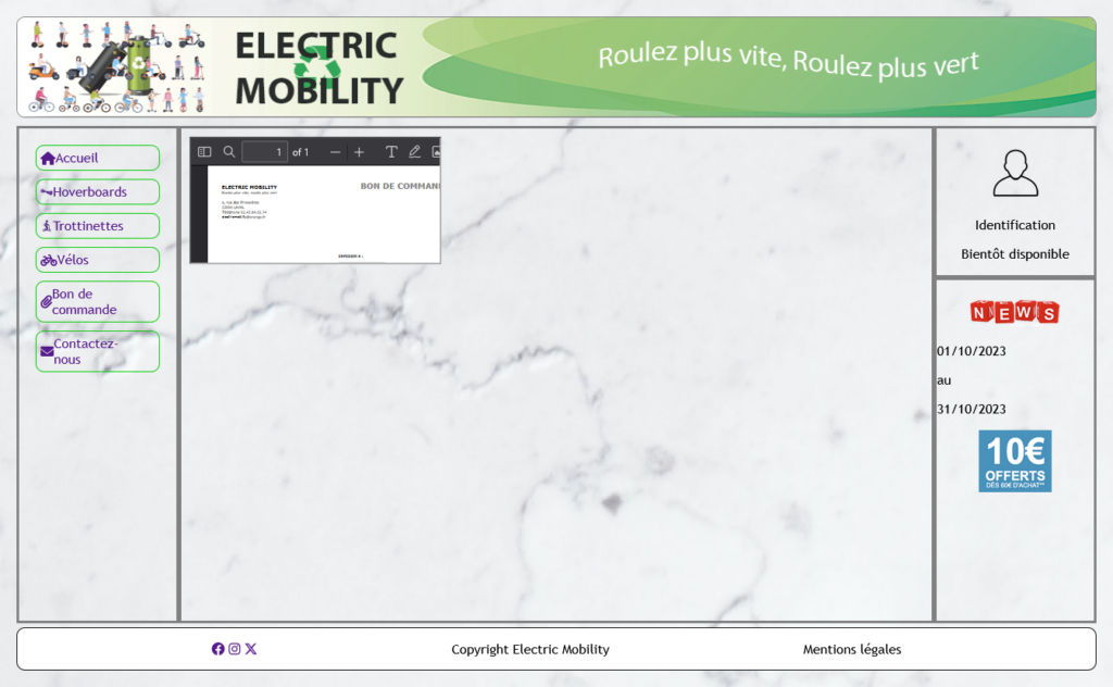 Monsieur Blaise, le directeur de la société souhaite mettre en ligne le catalogue de ses produits et permettre de télécharger un bon de commande à transmettre par mail.