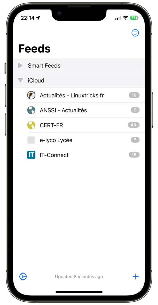 | Un outil de veille PUSH permet à un utilisateur de recevoir des alertes instantanées concernant des événements, des nouvelles menaces, des failles de sécurité ou des mises à jour importantes. Application NetNewsWire sur mon téléphone. C’est une application pour lire des flux RSS (Really Simple Syndication). | ![]() |