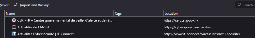 | Pour organiser cette méthode PULL, j’ai utilisé la barre de favoris du navigateur internet où j’ai donc épinglé ces sites pour les consulter. | ![]() |